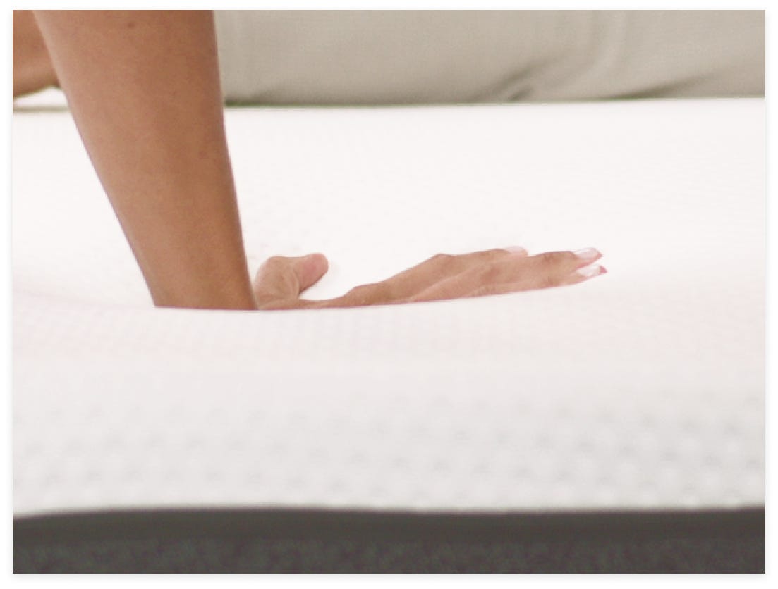 Firmeza média-suave. Um acolhimento suave que envolve o corpo, com suporte equilibrado.