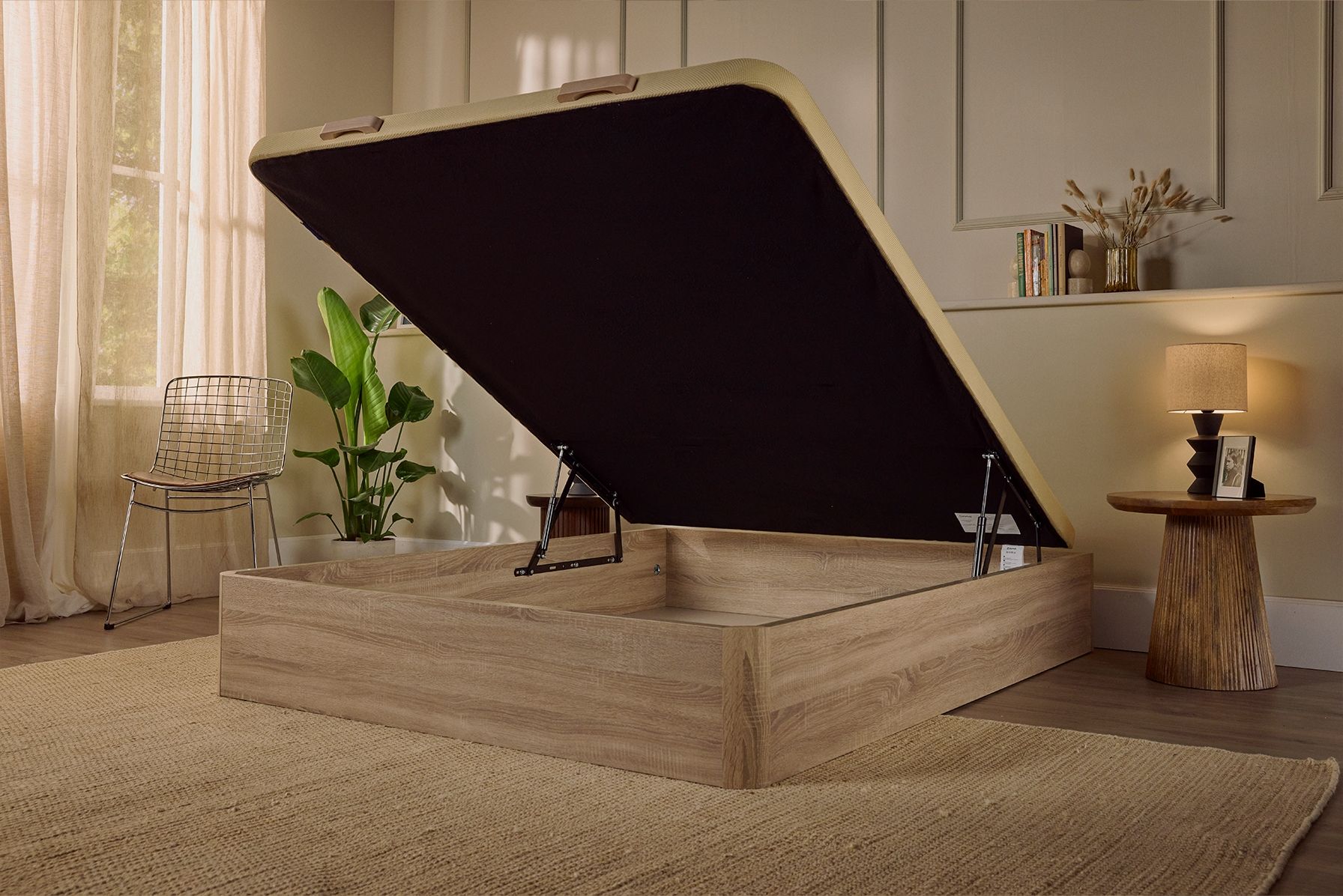 O seu sistema de molas hidráulicas facilita a abertura do sommier: basta puxar ligeiramente pelo puxador em faia lacada e ele abrir-se-á praticamente sozinho. Além disso, é totalmente silencioso.