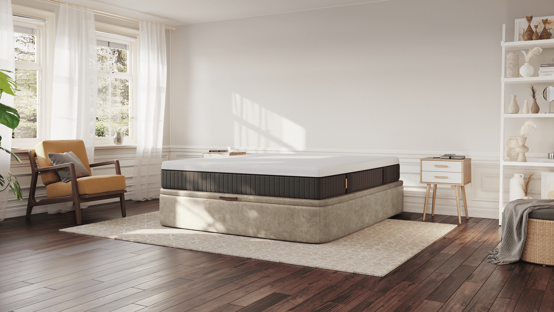 Queremos que o teu quarto seja um reflexo do teu estilo pessoal. Este sommier elevatório está disponível em duas cores elegantes: areia e fumê. Estas opções neutras são perfeitas para se adaptarem a qualquer esquema de decoração, adicionando um toque de sofisticação ao ambiente. Para além disso, podes adicionar uma cabeceira que oferece apoio adicional para tuas costas enquanto relaxas!