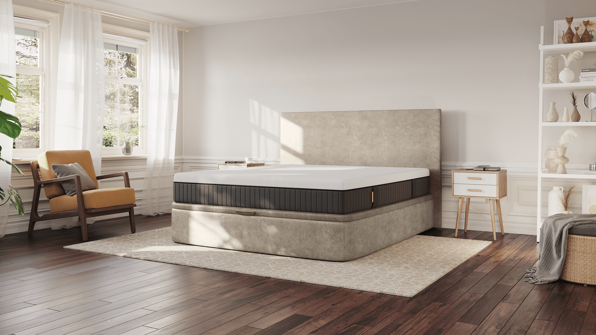 Queremos que o teu quarto seja um reflexo do teu estilo pessoal. Este sommier elevatório está disponível em duas cores elegantes: areia e fumê. Estas opções neutras são perfeitas para se adaptarem a qualquer esquema de decoração, adicionando um toque de sofisticação ao ambiente. Para além disso, podes adicionar uma cabeceira que oferece apoio adicional para tuas costas enquanto relaxas!